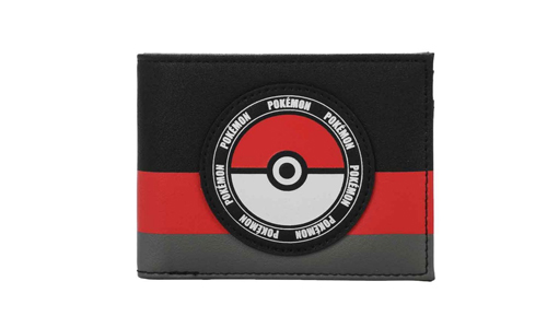 Slim leather wallet with Pokéball emblem.